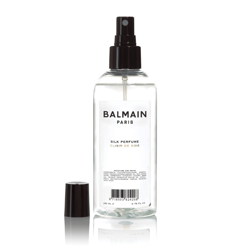 Balmain plaukų dulksna Silk perfume 200ml INCI: Cyclopentasiloxane, Dimethicone, Argania Spinoza Kernel Oil, Silk Amino Acids, Simmondsia Chinensis (Jojoba) Seed Oil, Prunus Amygdalus Dulcis Oil, Ethylhexyl Methoxycinnamate, Parfum.
