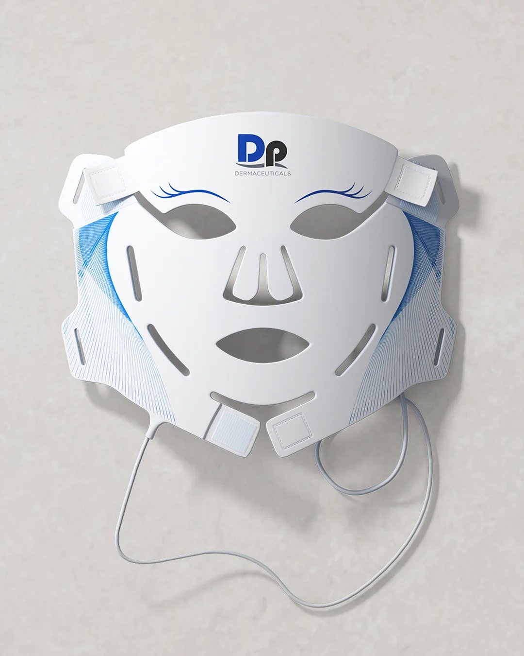 DP Dermaceuticals L.E.D. FACE™ – tai neinvazinė LED šviesos terapijos kaukė, skirta odos priežiūros rutinai papildyti namuose. Procedūros metu naudojama raudonoji (630 nm) ir artimųjų infraraudonųjų spindulių (830 nm) šviesa, kuri veikia odos paviršinius ir gilesnius sluoksnius.