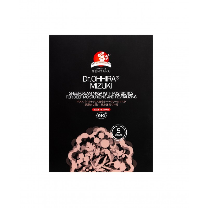 Dr.OHHIRA® MIZUKI lakštinė-kreminė veido kaukė su postbiotikais giliam odos drėkinimui ir atgaivinimui.