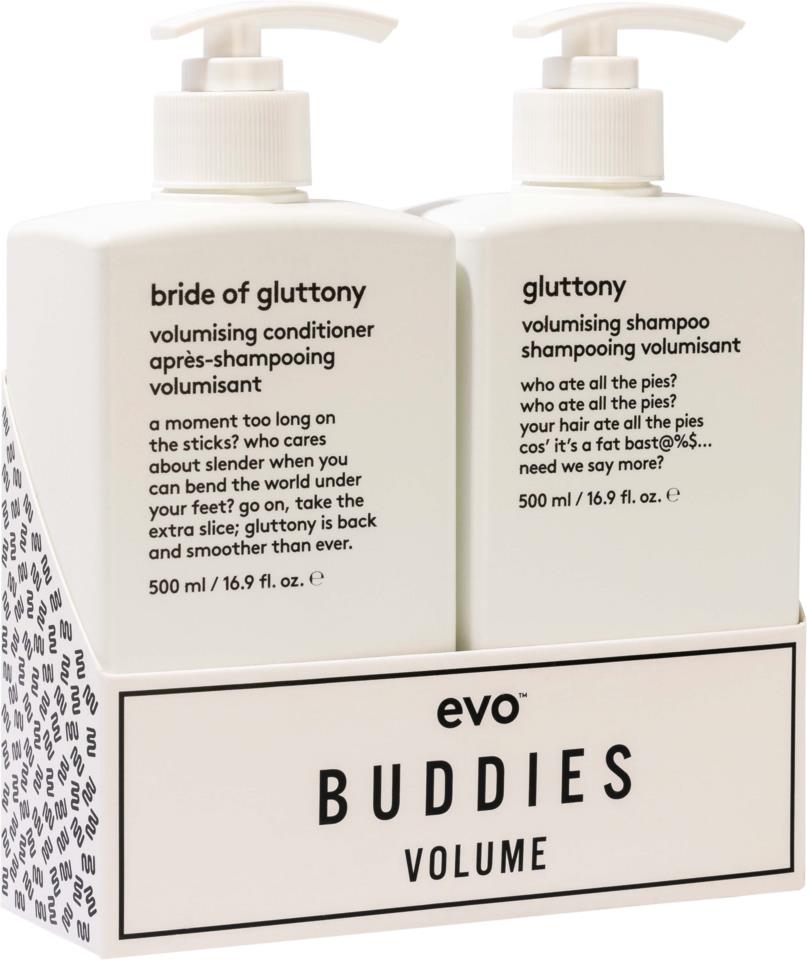 „Evo Volume Buddies“ – tai plaukų priežiūros rinkinys, skirtas kasdieniam naudojimui. Rinkinį sudaro du produktai: