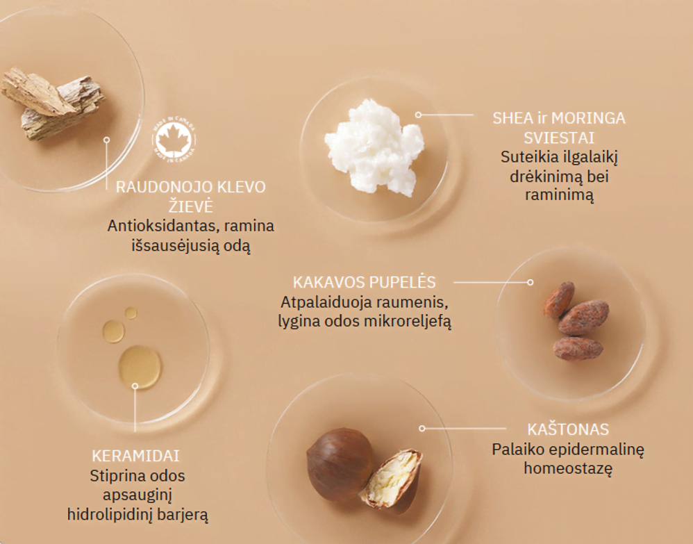 Sudėtyje esantys ingredientai padeda palaikyti odos barjerinę funkciją.