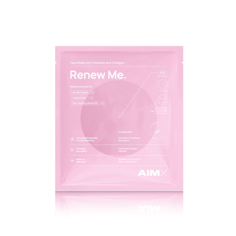AIM X bioceliuliozinė veido kaukė – tai intensyviai drėkinanti lakštinė kaukė, prisotinta kolagenu, trimis peptidais ir augaliniais ekstraktais. Bioceliuliozės struktūra leidžia kaukei idealiai prisitaikyti prie odos, užtikrindama veikliųjų medžiagų pasiskirstymą.