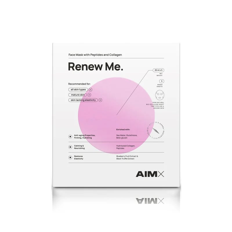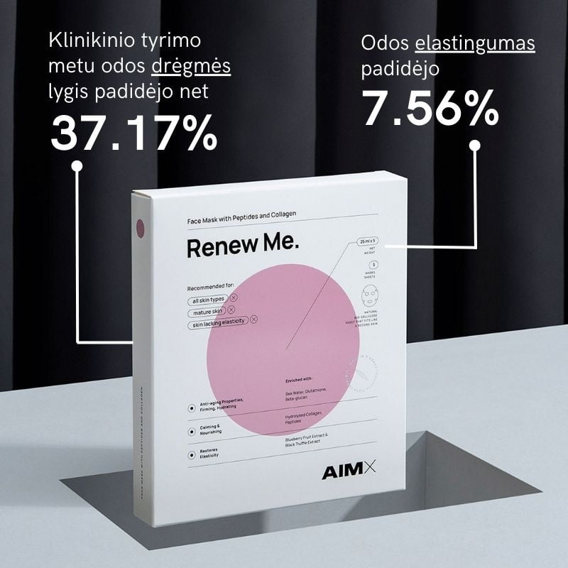 AIM X bioceliuliozinė veido kaukė – tai intensyviai drėkinanti lakštinė kaukė, prisotinta kolagenu, trimis peptidais ir augaliniais ekstraktais. Bioceliuliozės struktūra leidžia kaukei idealiai prisitaikyti prie odos, užtikrindama veikliųjų medžiagų pasiskirstymą.