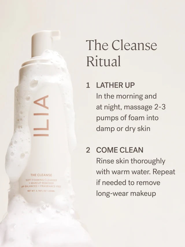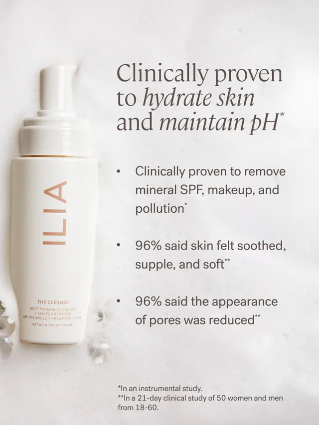 ILIA The Cleanse Soft Foaming Cleanser – tai švelnios tekstūros veido valomosios putos, skirtos kasdienei odos priežiūrai.