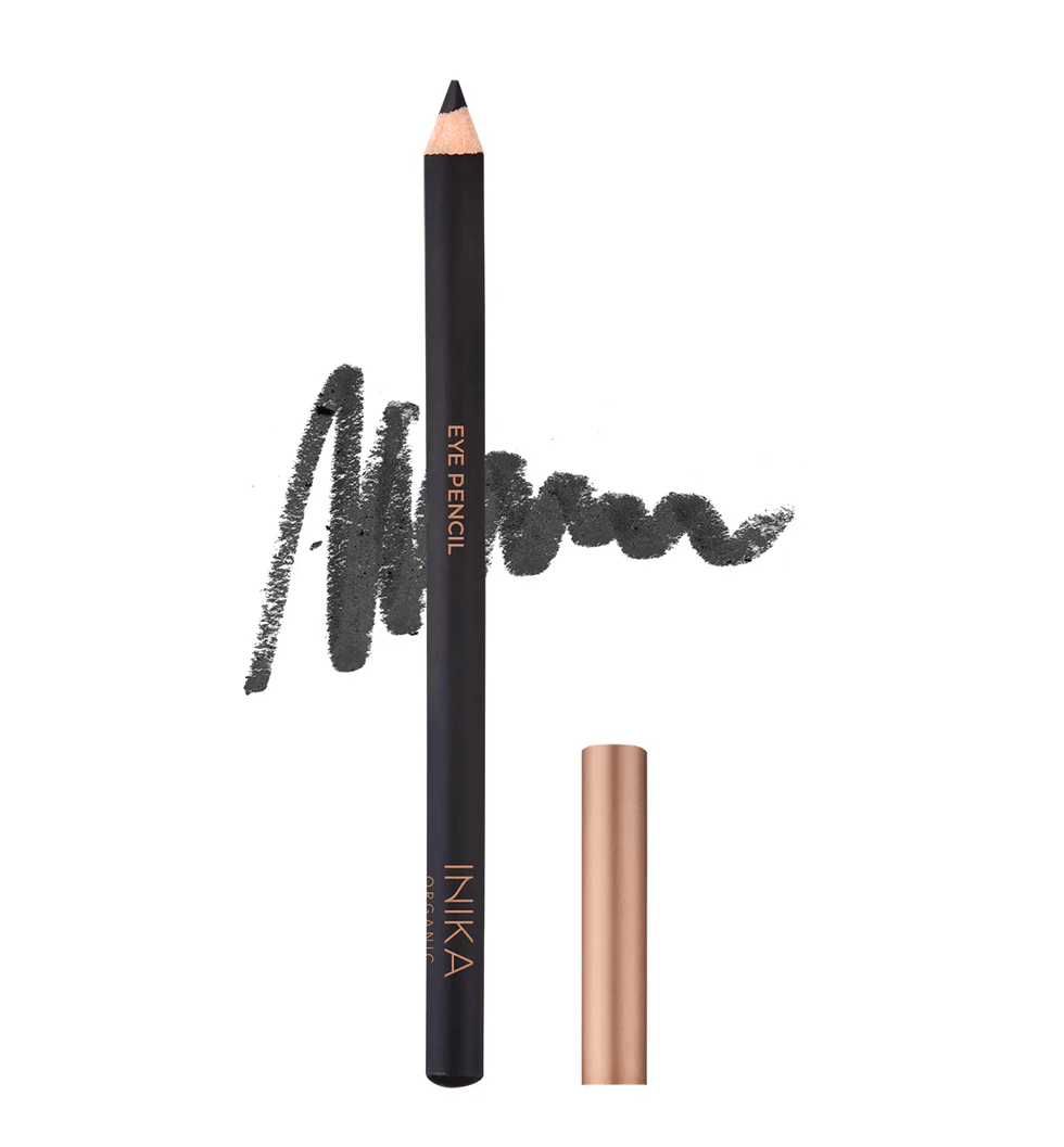 - INIKA Organic Black Eye Pencil – sodrios pigmentacijos akių pieštukas, pasižymintis sklandžiu dengimu ir ilgalaikiu blizgesiu, tinkamas net jautrioms akims.