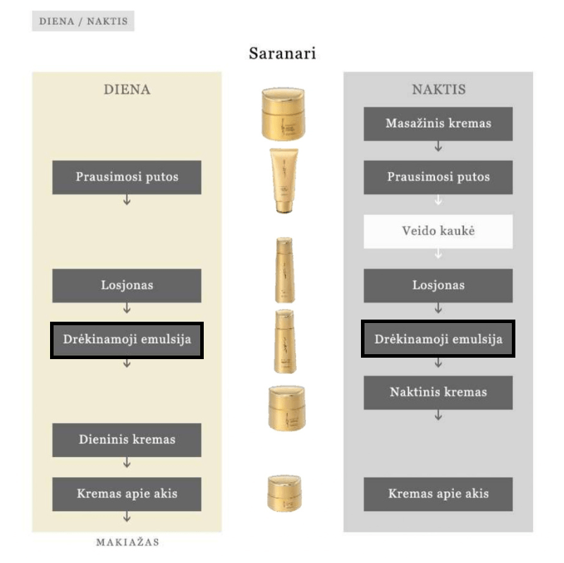 Kosmetikos gaminys, skirtas kasdienei brandžios ir sausos veido odos priežiūrai. Emulsija gerina odos būklę ir: