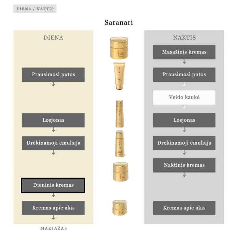 Kosmetikos gaminys, skirtas brandžios, sausos ar elastingumą praradusios odos kasdienei dieninei priežiūrai.