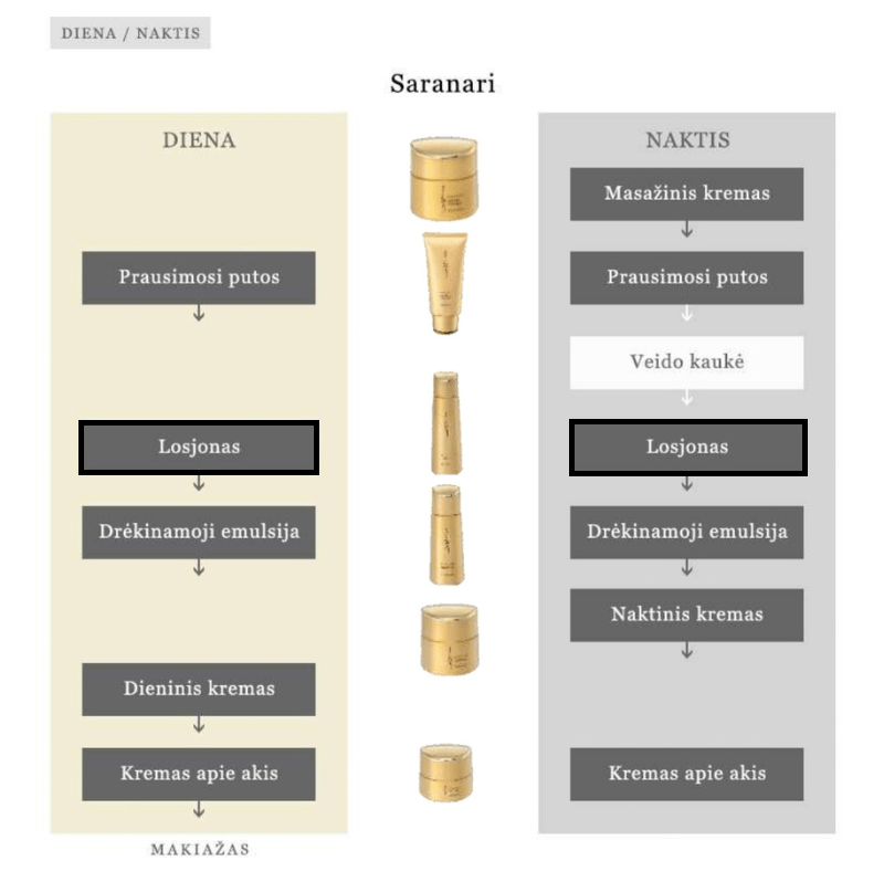 Kosmetikos gaminys, skirtas brandžios, sausos ir elastingumą praradusios odos kasdienei priežiūrai. Tonikas (losjonas) paruošia odą tolimesnei priežiūrai, kartu: