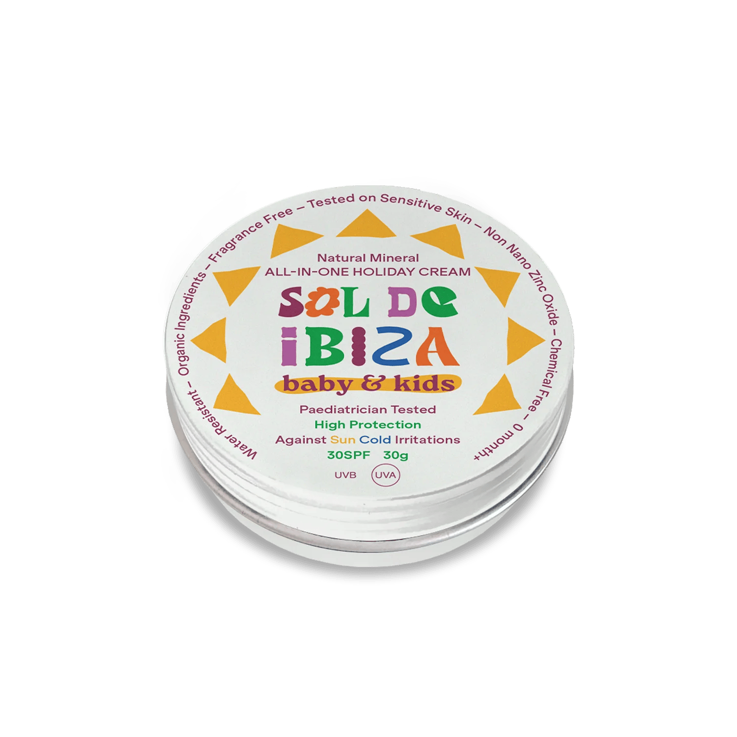 Sol de Ibiza Mineralinis apsauginis kremas SPF30 – tai kasdieniam naudojimui skirtas natūralios sudėties kremas, sukurtas švelniai kūdikių ir vaikų odos priežiūrai. Priemonė suteikia plataus spektro apsaugą nuo UVA ir UVB spindulių, padėdama išsaugoti odos komfortą saulės poveikio metu.