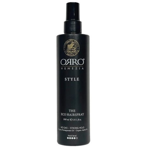 Orro Venezia Style ECO Hairspray Strong – tai plaukų lakas be aerozolio, skirtas visų tipų plaukams. Jo sudėtyje esantys ingredientai, tokie kaip jojobos ir granatų sėklų aliejai, padeda palaikyti plaukų komforto pojūtį.