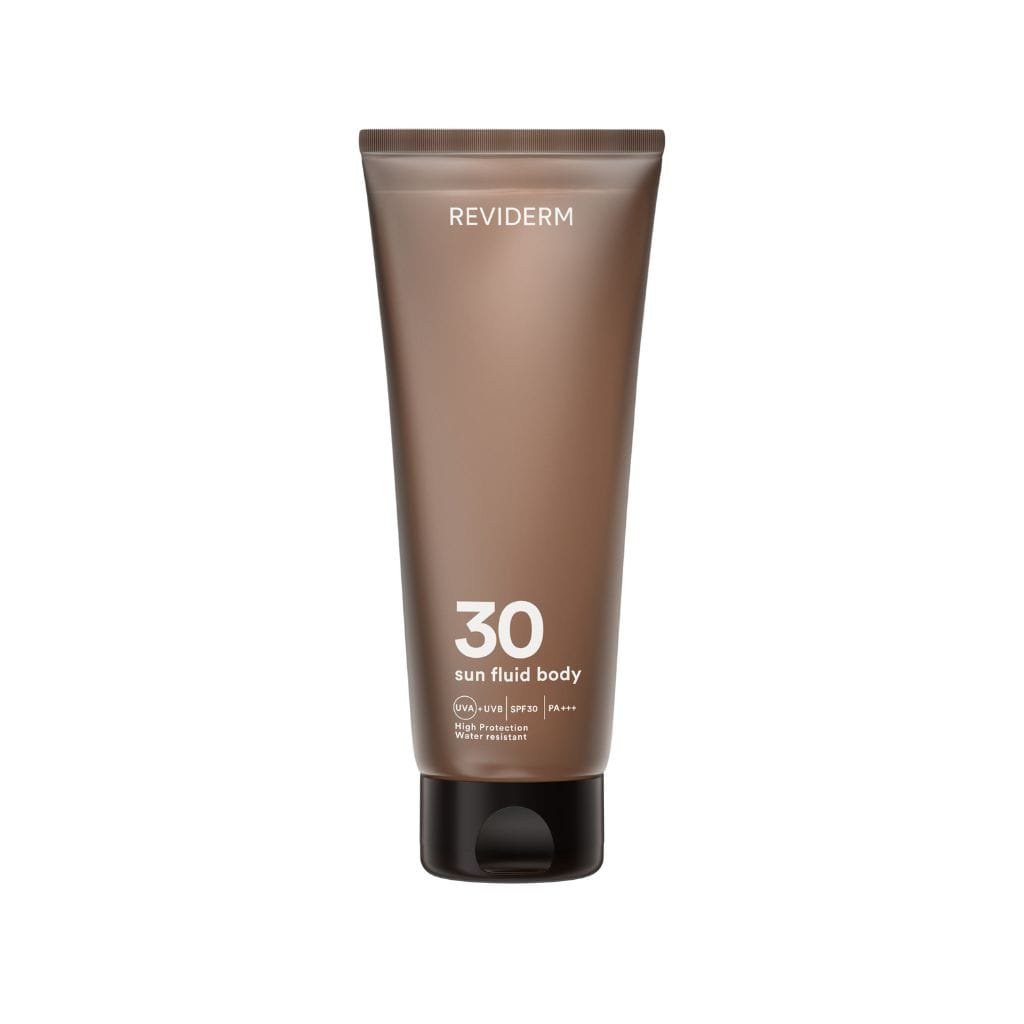 Reviderm Sun Fluid Body SPF 30 – lengvos tekstūros apsauginė priemonė kūnui, padedanti apsaugoti odą nuo žalingų UVA ir UVB spindulių. Šis fluido tipo kremas lengvai paskirstomas, greitai įsigeria ir nepalieka lipnumo pojūčio. Tinka visų tipų odai, įskaitant jautrią.