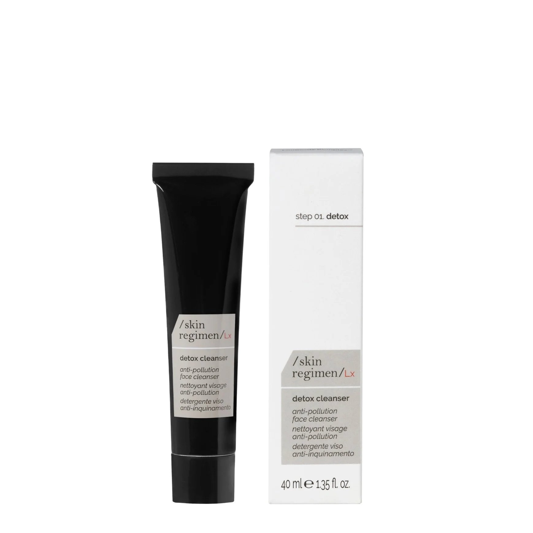 Praturtinkite savo kasdienę odos priežiūros rutiną Lx Detox Cleanser – švelniu, putojančiu valikliu, kuris padeda pašalinti makiažo, SPF ir aplinkos nešvarumų likučius.